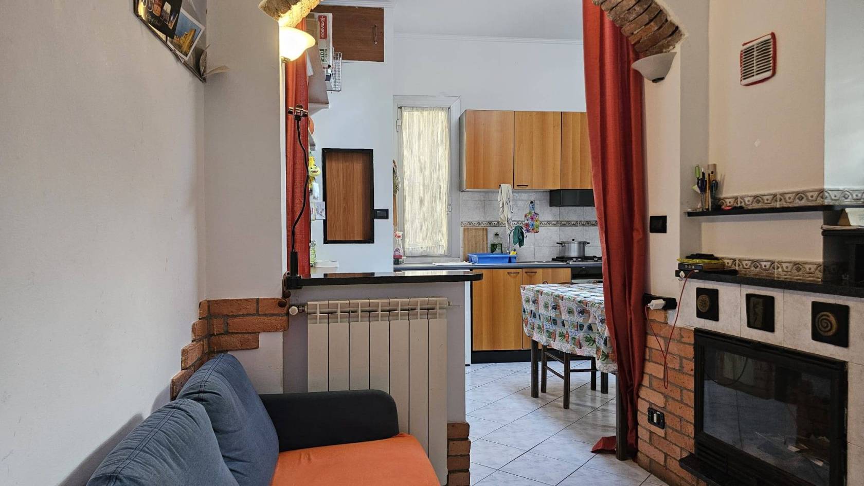 Gli spazi sono sfruttati al meglio: circa 50 mq ben distribuiti con ingresso sulla cucina, un accogliente soggiorno con caminetto a legna e un passaggio funzionale che conduce alla camera da letto, dotata di cabina armadio per mantenere ordine e spazio.